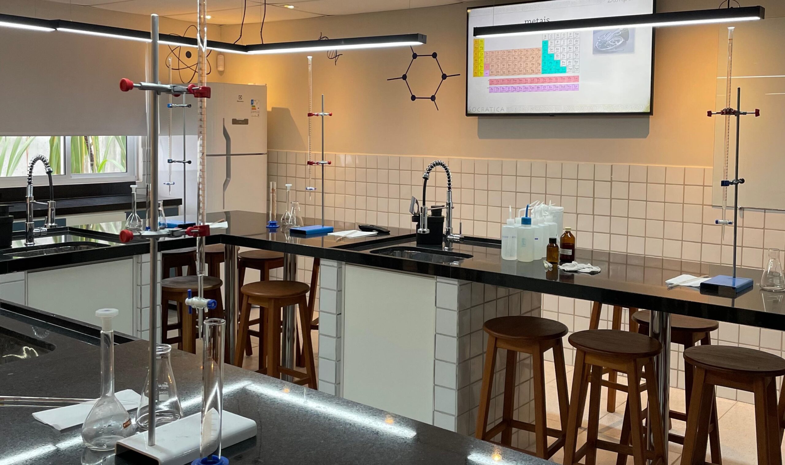 Já a aula inaugural do Laboratório reuniu a turma do 2º ano do Ensino Médio da unidade, que vivenciou uma experiência de transformação de materiais junto aos professores de Química, Erik Grisi e José Rodrigo.